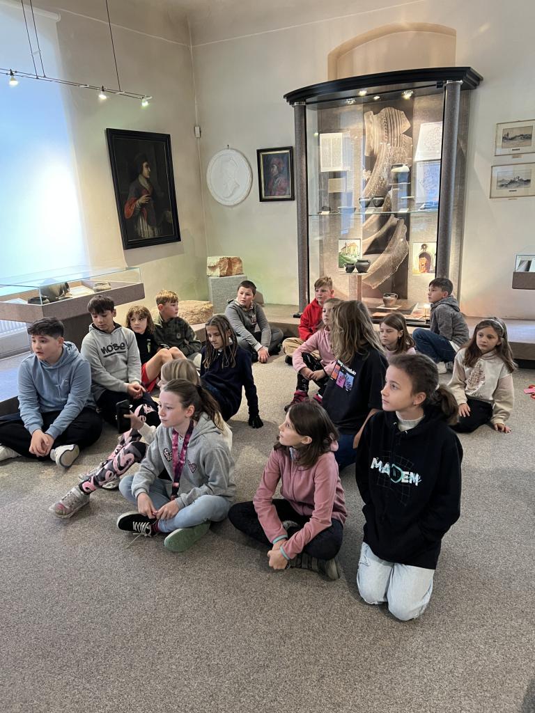 Po návštěvě muzea se žáci vydali na vycházku po historických památkách města. Vstoupili na městské hradby u kostela Panny Marie Sněžné. “Myší dírou” se dostali na Pátek. Zastavili se