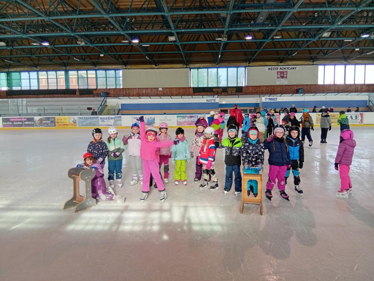 V úterý 4. 3. jsme poprvé vyrazili bruslit na velký stadion v Rokycanech! Doteď jsme trénovali na menším stadionu v Holoubkově, takže pro děti to byla velká změna a zároveň skvělá zkušenost.