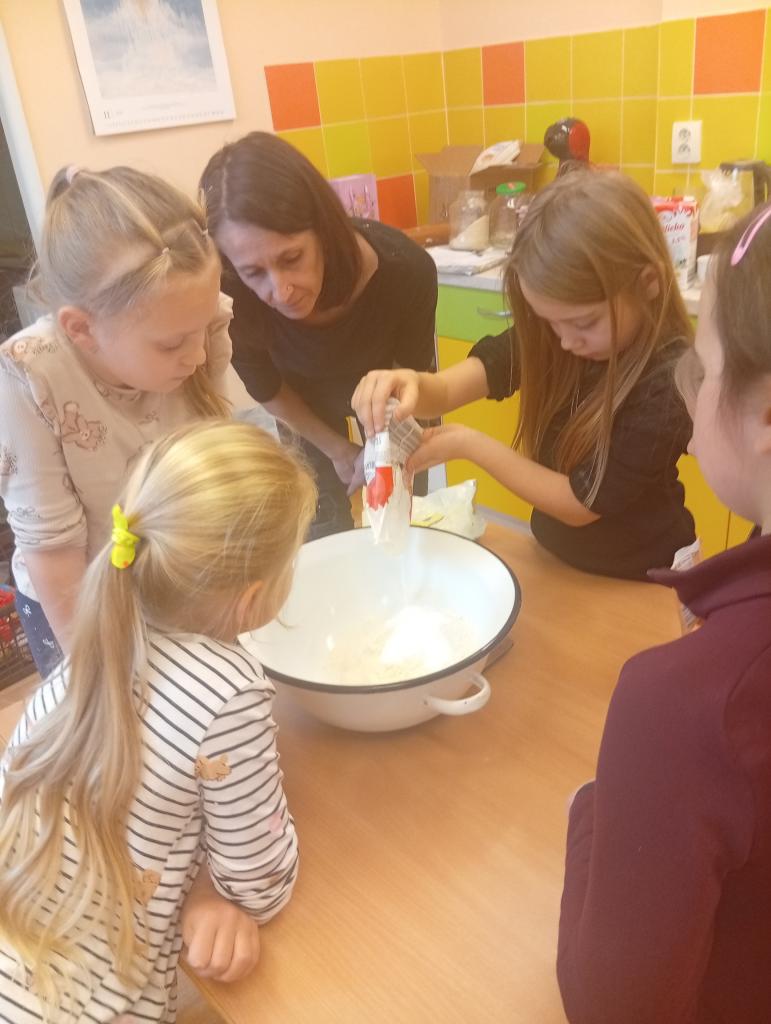 Minulý týden nás navštívila naše milá teta Jitka, která je známá nejen svou láskou k pečení, ale především k dětem. Teta Jitka si k sobě brala děti po skupinkách a společně s nimi trávila čas ve školní kuchyňce. Pod jejím vedením děti pekly voňavé linecké cukroví a vyráběly sladká vosí hnízda. Bylo krásné sledovat, jak si děti s chutí a radostí osvojují pečící dovednosti a zároveň se učí spolupracovat. Já jsem měla tu čest ochutnat výsledky jejich práce a musím říct, že všechno bylo opravdu výborné! Na závěr si děti své výtvory zabalily do krabiček a odnesly si je domů, aby potěšily i své rodiny. Teta Jitka nám opět připomněla, že pečení může být nejen zábavou, ale také krásnou příležitostí k tvoření a sdílení radosti s ostatními.